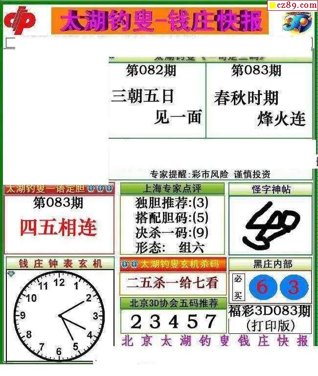 钱庄快报2026083期3d图谜